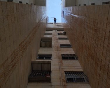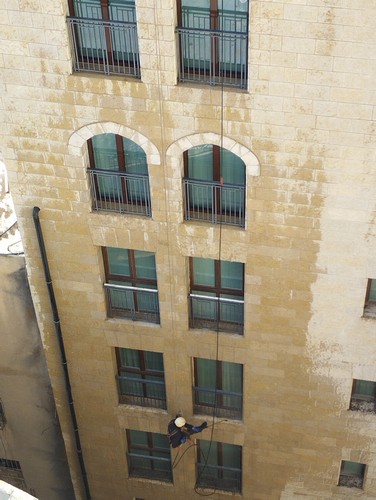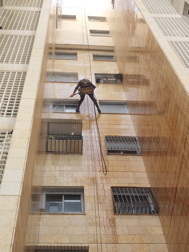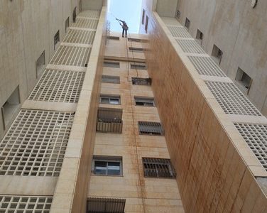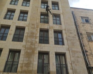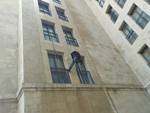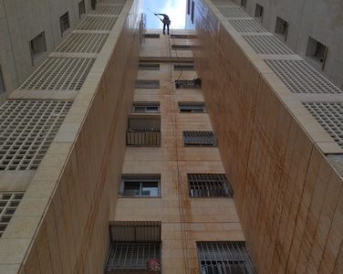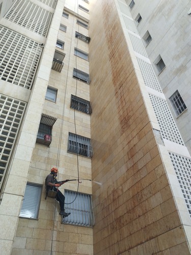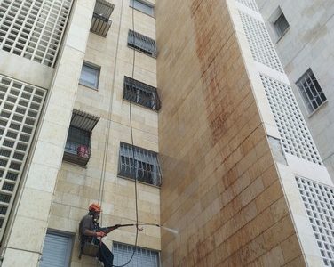 - שטיפת מבנים באמצעות עבודות בגובה, פיגומים וסנפלינג