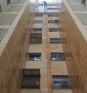 תהליך שטיפת מבנים מהיר מאוד וטכניקת העבודה בגובה אינה מפריעה גם לסביבה.